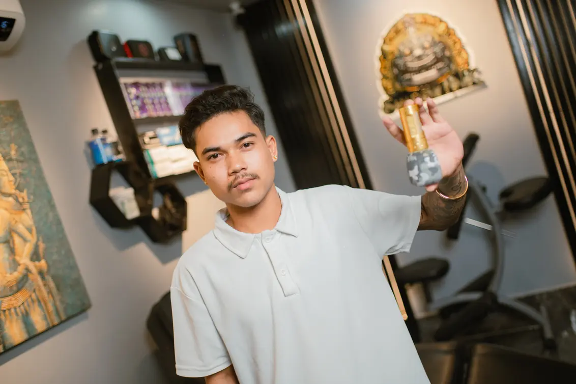 Panha has spent many years mastering the art of tattooing in Cambodia’s cultural capital. With a passion for body art as a form of storytelling, he has developed a unique style that blends precision, creativity, and personal meaning.